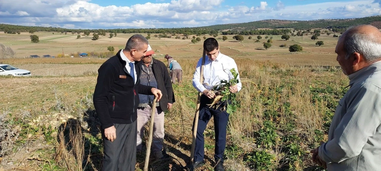 Dumlupınar Kaymakamı Alperen Teltik, ilçeye bağlı Eyidemir Köyü’nde şeker pancarı hasadı yapılan alanlarda incelemelerde bulundu.