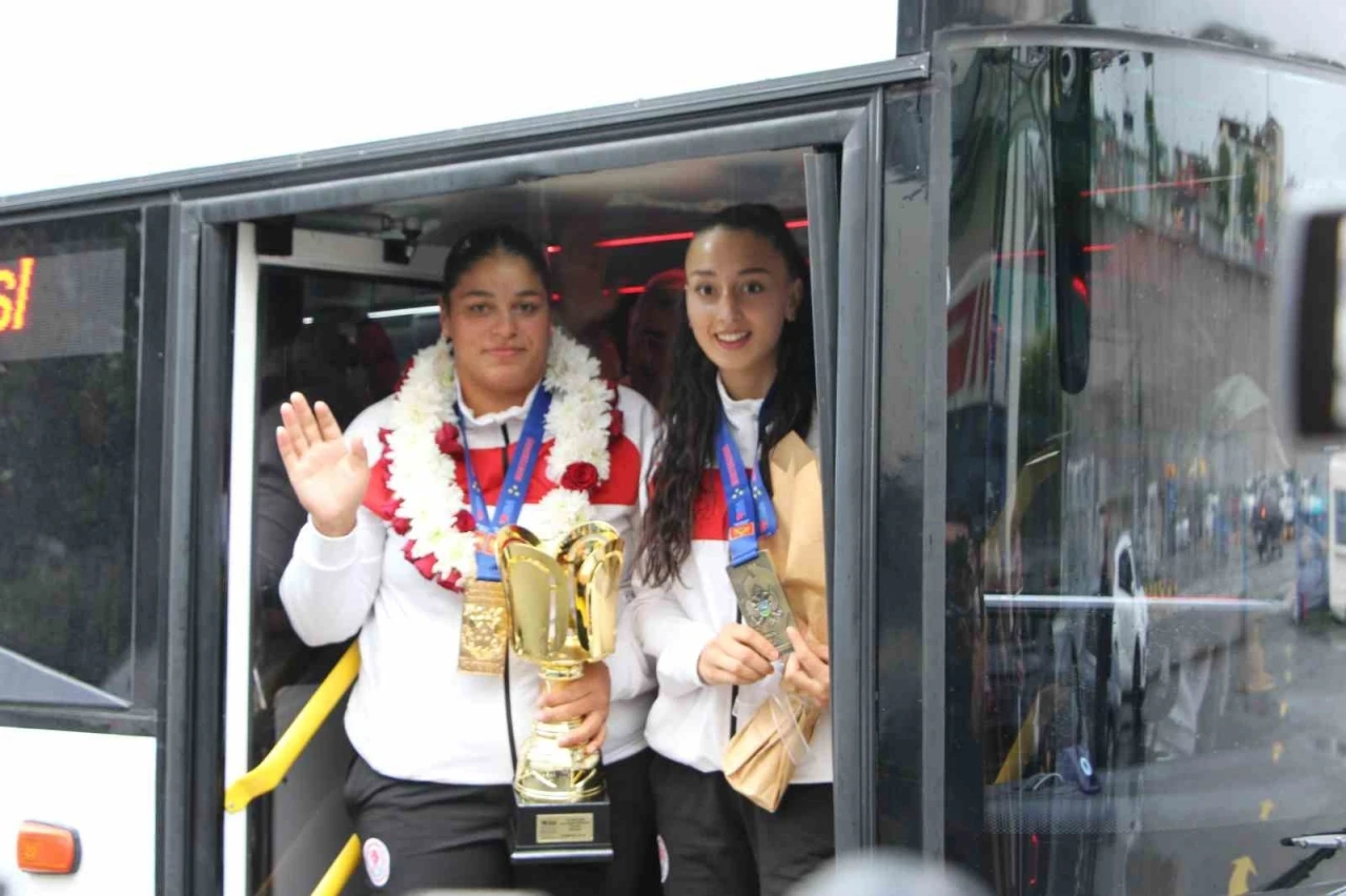 Karadağ’da düzenlenen Dünya Gençler Boks Şampiyonası’nda altın madalya kazanan Havvanur Kethüda ve 75 kiloda bronz madalya alan Dilara Sak, Trabzon’da coşkulu bir şekilde karşılandı.