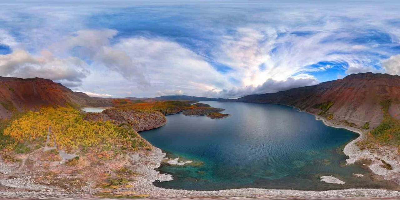 Van Gölü Havzası’nın batısında, Bitlis’in Tatvan, Ahlat ve Güroymak ilçeleri arasında yer alan ve Avrupalı Seçkin Destinasyonlar Projesi (EDEN) çerçevesinde ’Mükemmeliyet Ödülü’ alan 2 bin 250 rakımlı Nemrut Krater Gölü, muhteşem manzarasıyla ziyaretçilerini hayran bırakıyor. Bölgeye has bitki örtüsü, sıcak ve soğuk gölleri, buhar ve buz bacaları ile eşsiz bir güzellik barındıran kaldera, sonbahar mevsimi ile birlikte oluşan renk cümbüşüyle de misafirlerine adeta görsel şölen sunuyor. Sonbahar mevsimiyle birlikte Nemrut Kalderası’nın iç kısımlarındaki bitki örtüsünde oluşan kızıllık ve altın sarılığı göllerle bütünleşiyor.