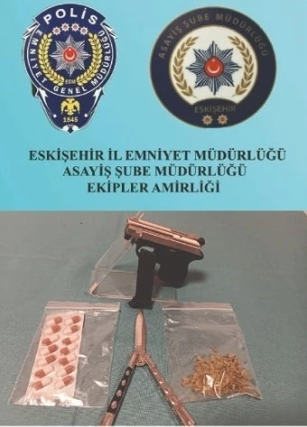 Tepebaşı ilçesinde Eskişehir Emniyet Müdürlüğü’ne bağlı Asayiş Şube Müdürlüğünce gerçekleştirilen rutin uygulama esnasında durumundan şüphelenilerek durdurulan araçta 1 şüphelinin arandığı tespit edildi. Ayrıca ekiplerce şüphelinin üzerinde yapılan aramalarda; 3 gram bonzai maddesi, 14 sentetik hap, 1 kurusıkı tabanca, 1 bıçak ele geçirildi. Şüpheli hakkında işlem başlatıldı.