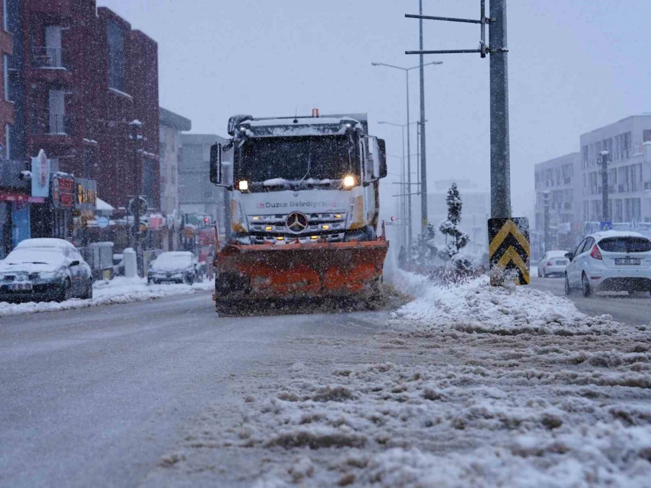 Düzce Belediyesi şehri etkisi altına alan yoğun kar yağışına karşı 24 saat esasına göre mücadele çalışmalarını sürdürüyor. 24 saattir kontak kapatmayan Düzce Belediyesi kar yağışının getirdiği olumsuzlukları ortadan kaldırmak ve güvenli ulaşımı sağlamak üzere yoğun bir çalışma yürütüyor.
