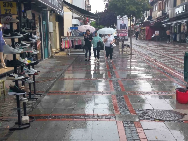 Son günlerde hava sıcaklığının mevsim normallerinde seyrettiği Edirne’de şimdi de yağmur etkisini gösterdi. Yağmura hazırlıksız yakalanan vatandaşlar, tente altında yürümeye başladılar. Esnaf ise mallarının ıslanmaması için örtüler örttü.