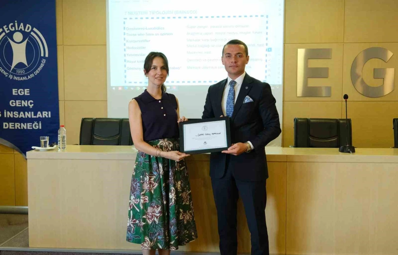 Ege Genç İş İnsanları Derneği (EGİAD), üyelerinin markalaşma yolculuğunda onlara rehberlik edecek önemli bir buluşmaya daha imza attı. Milano Istituto Marangoni’de moda tasarımı, Paris INSEEC’te lüks marka yönetimi yüksek lisansı yapan ve Londra ile Paris’te stil ve marka duruşu konularında uzmanlaşan Serra Özsoy Karagülle, EGİAD tarafından düzenlenen "Uluslararası Markalara Güncel Yaklaşımlar" başlıklı seminerde iş dünyasıyla bir araya geldi.