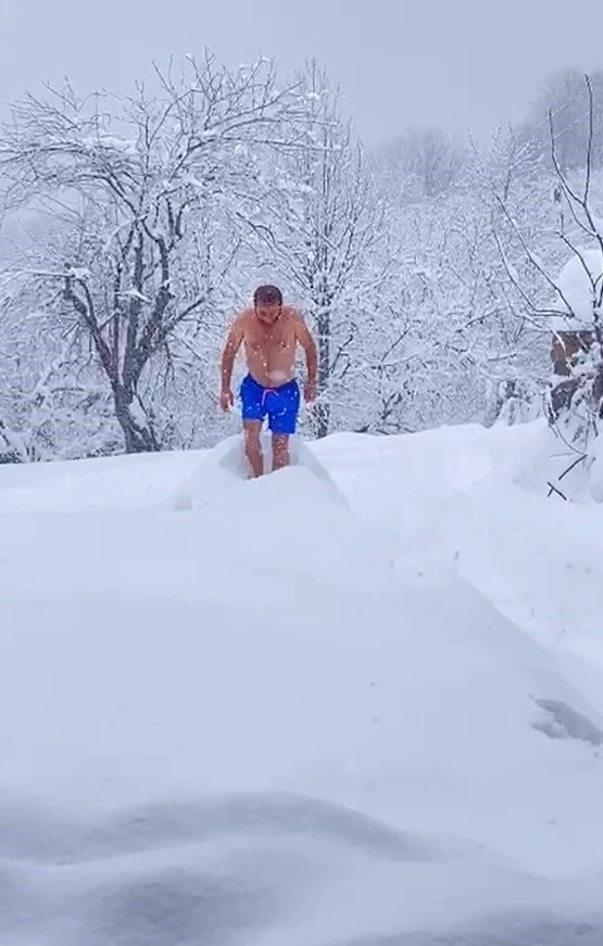 Sakarya’nın Hendek ilçesi Aksu Mahallesi’nin yüksek bölgelerinde yaşayan 36 yaşındaki Mesut Özkılıç, şortunu giyerek eksi 10 derece soğuğa aldırmadan 1 buçuk metre kalınlığındaki karların içerisinde kahkahalar eşliğinde yüzmeye çalıştı. Tanıdıkları o anları cep telefonu ile kayıt altına aldı. Özkılınç "Var mı benimle dereye gelecek olan, dereye dalıyorum" diyerek karla kaplanan evinin bahçesine atladı. Kara dalış yaptıktan sonra kar banyosu yapmayı da ihmal etmeyen Özkılınç "Sıcak kar yağıyor" şeklinde konuştu.