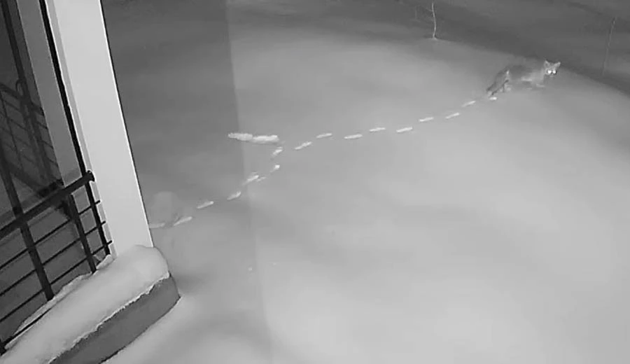 Elazığ’da kardan dolayı yiyecek bulamayan ve köylerdeki evlerin kenarlarına kadar inen tilki, tavşan ve sansarlar güvenlik kamerasına yansıdı.
