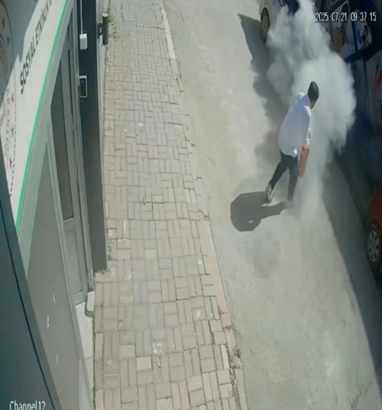 Elazığ’da sabah saatlerinde, park halindeki otomobilde çıkan yangının güvenlik kamerası görüntüleri ortaya çıktı. Görüntülerde, aracın altından alevlerin çıktığı ve dumanları fark eden kurs merkezi çalışanlarının hızla yangına müdahale ettiği anlar yer alıyor.