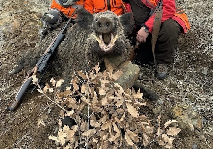 Av turizmi kapsamında yurtdışından gelen yabancı avcılar, Elazığ’da dağlık alanlarda 250 kilo ağırlığında yaban domuzu avladı.