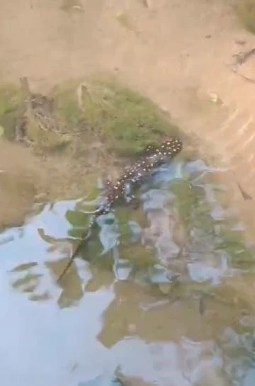 Elazığ’ın Palu ilçesinde bir derede nadir görülen sarı benekli semenderi fark eden bir vatandaş, o anları cep telefonu kamerasıyla kayıt altına aldı. Derede yüzerken görüntülenen semender bir süre sonra gözden kayboldu.
