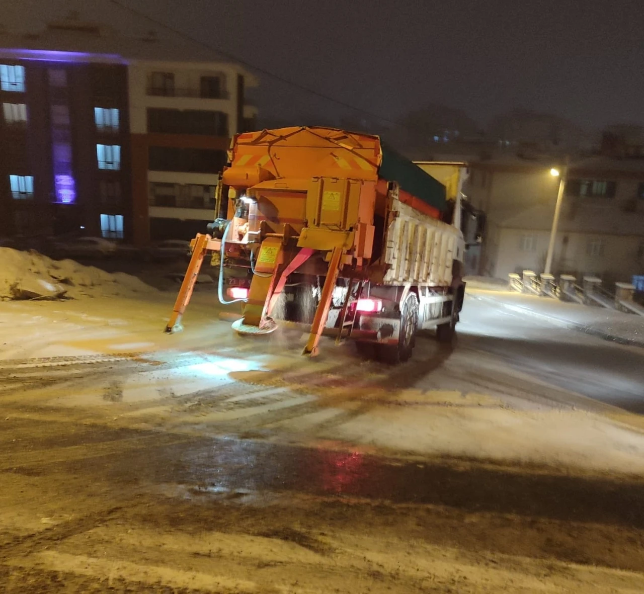 Elazığ’da başlayan kar yağışı sonrasında belediye ekipleri kent genelinde buzlanmaya karşı tuzlama çalışması yaptı.