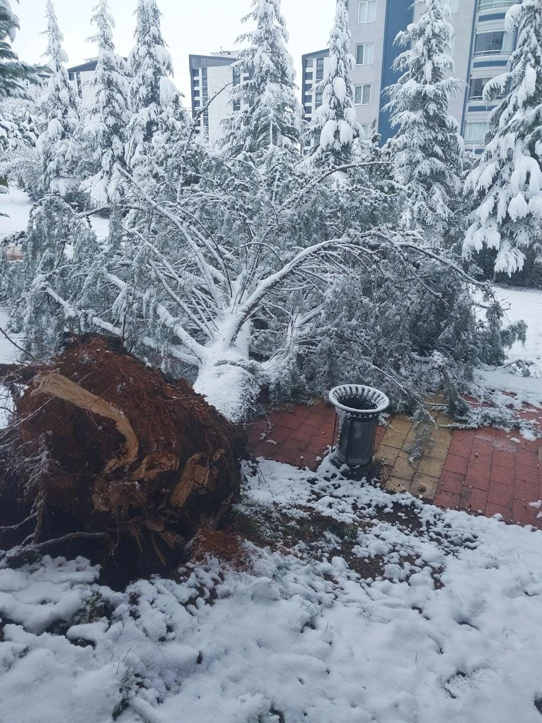 Elazığ’da kar yağışı sonrasında ağırlığa dayanamayan bir ağaç devrildi.