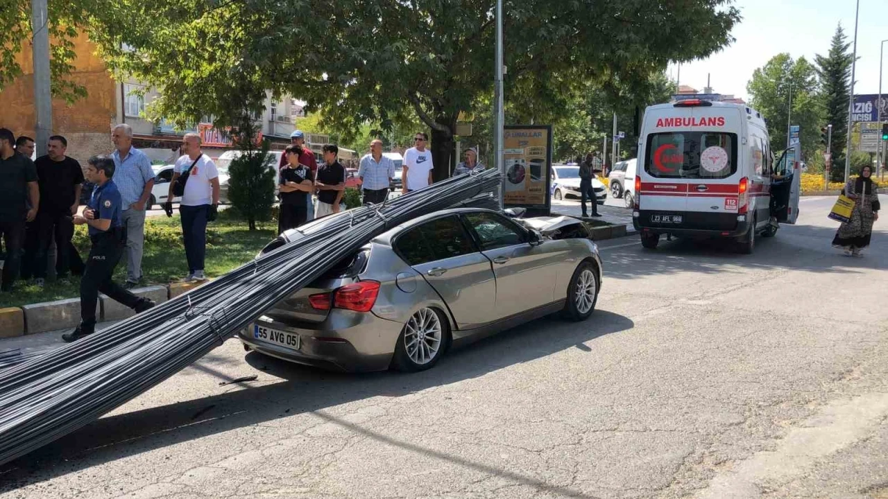 Kaza, Atatürk Bulvarında meydana geldi. Edinilen bilgiye göre, T.O. idaresindeki 23 LH 911 plakalı demir yüklü tır, kırmızı ışıkta ani fren yapması sonucu taşıdığı tonlarca demir, aynı istikamette kırmızı ışıkta bekleyen S.T. idaresindeki 55 AVG 05 plakalı lük otomobilin üstüne düştü. Kazada 2 kişi yaralandı. Kazayı gören çevredeki vatandaşların haber vermesi üzerine olay yerine sağlık ve polis ekipleri sevk edildi. Yaralılar, olay yerinde yapılan ilk müdahalelerin ardından ambulanslarla kentteki hastanelere kaldırılarak tedavi altına alındı. İlginç kazayı gören vatandaşlar ise fotoğraf çekmek için birbirleriyle yarıştı.
