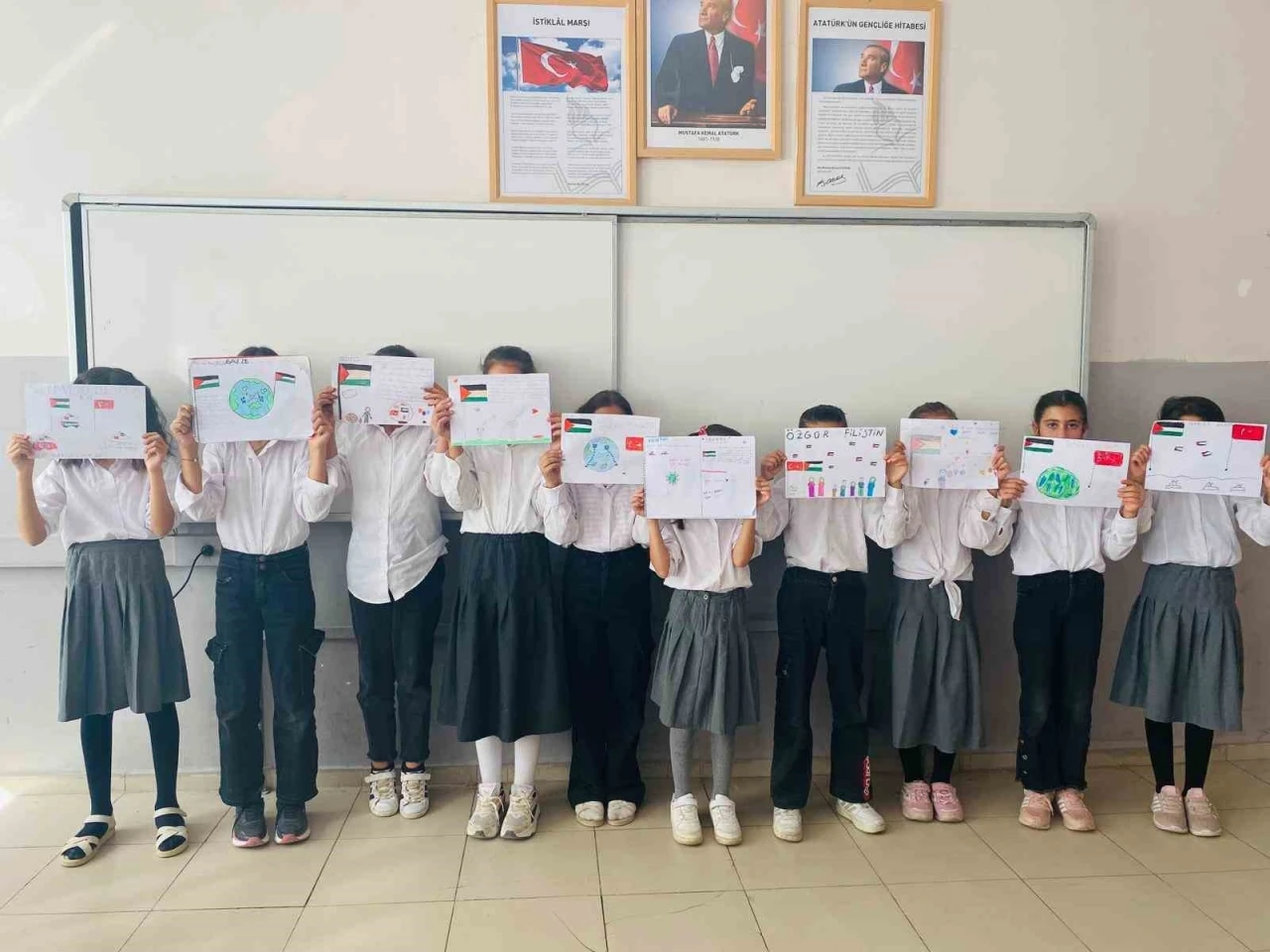 Elazığ’ın Kovancılar ve Arıcak ilçesinde öğrenciler Filistin’e destek verdi.