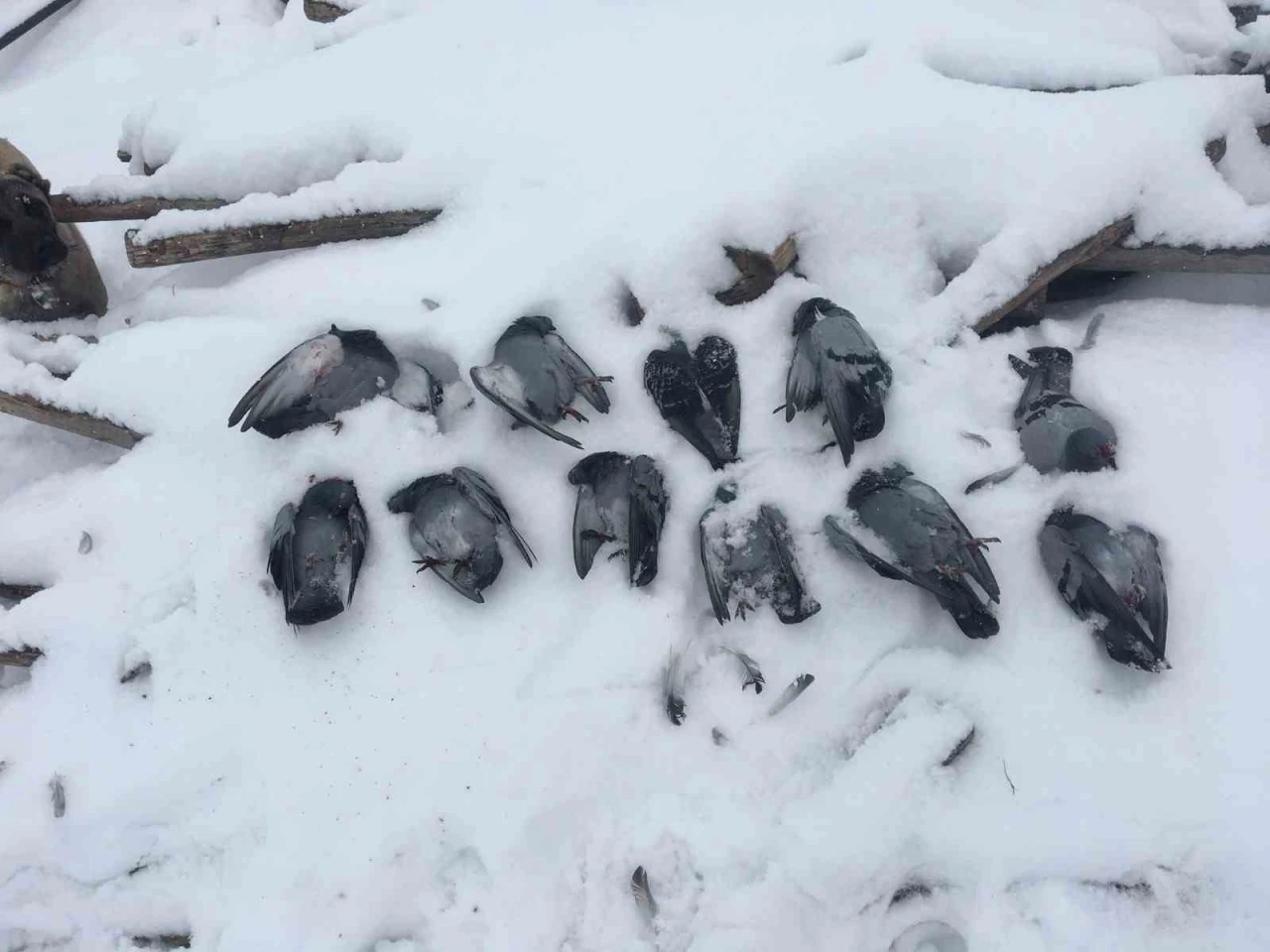 Hava sıcaklığının eksi 13 dereceleri gördüğü Elazığ’da, onlarca güvercin donarak telef oldu.