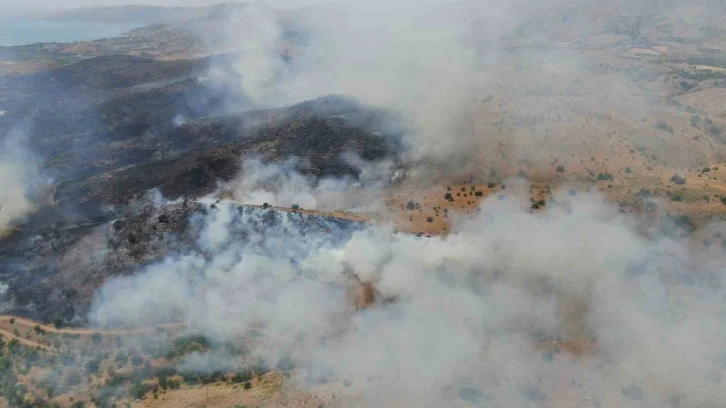 Elazığ’ın Gezin ile Tepecik köyleri arasındaki ormanlık alanda yangın çıktı. Ekiplerin müdahalesi sürerken, Hazar Gölü’nden su alan helikopterin de orman yangınına havadan müdahalesi sürüyor.