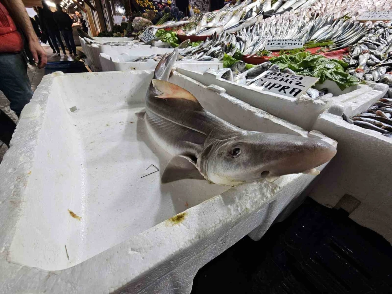 Kapalı çarşıda balıkçılık yapan Nihat Baştaş, köpek balığını satışa sundu. İskenderundan getirilen ve kilosu 600 liradan satışa sunulan köpek balığı hakkında açıklama yapan Nihat Baştaş,"Kanser hastaları genelde talep ediyor.İskenderundan geldi.Cam göz köpek balığı.İnsanlar ilk gördüğünde şaşırıyor.İlk defa görenler var.Fotoğraf felan çekenler oluyor.Kilosu 600 lira" dedi.