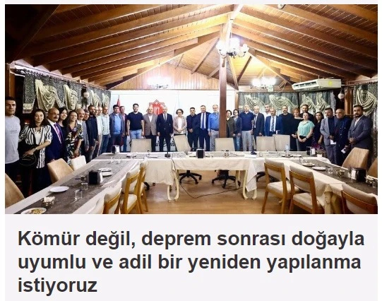 Toplantıda da ortak çıkan görüş olarak Kahramanmaraş'ın yeni bir kömürlü santrale değil, deprem sonrası doğayla uyumlu ve adil bir yeniden yapılanmaya ihtiyacı olduğu belirtildi.