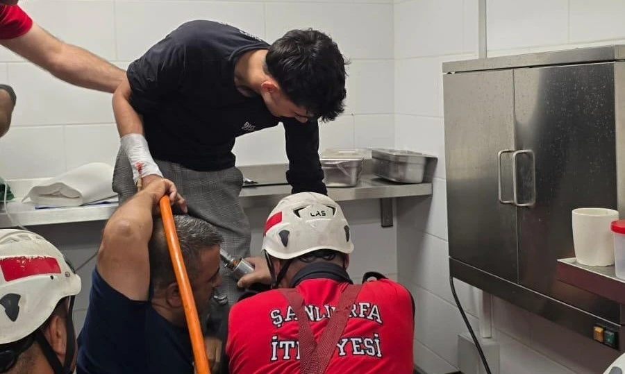 Şanlıurfa’da bir vatandaş elini kaptırdığı kıyma makinesiyle birlikte götürüldüğü hastanede itfaiye ekiplerinin müdahalesiyle kurtarıldı.