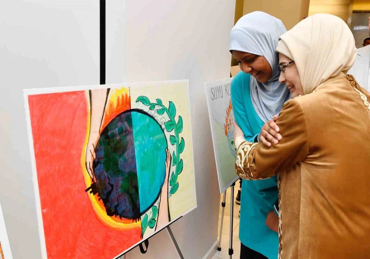 Sıfır Atık Projesi’nin uygulanması, atıkların geri dönüşümünün ve temiz suyun önemine vurgu yapan öğrenciler, kirletilen doğanın çocukların gözüyle geldiği noktayı ve geleceğe aktarılabilecek en güzel mirasın çevre olduğunu dile getirdiler. Kum saati metaforuyla doğayı korumak için zamanın azaldığını anlatan resmi yapan 10 yaşındaki öğrenci, Emine Erdoğan’a bir kum saati hediye etti.