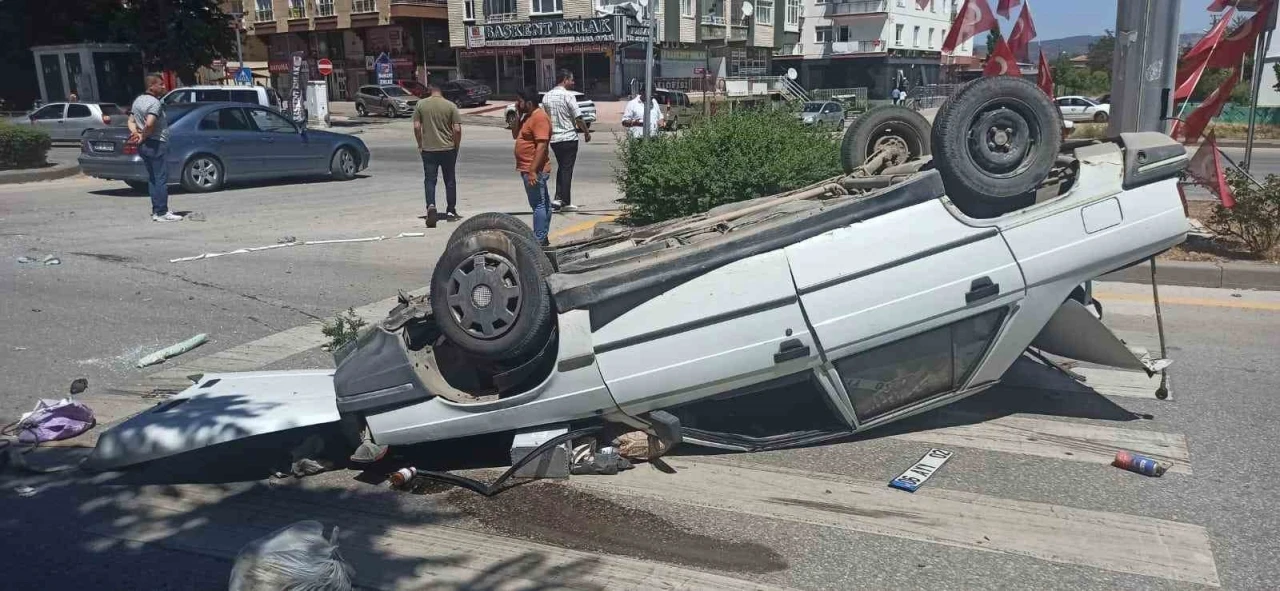 Ankara’nın Kahramankazan ilçesinde, kavşaktan kontrolsüz çıkan araca çarpmamak için manevra yapan sürücü, takla atan araçtan yara almadan kurtuldu.