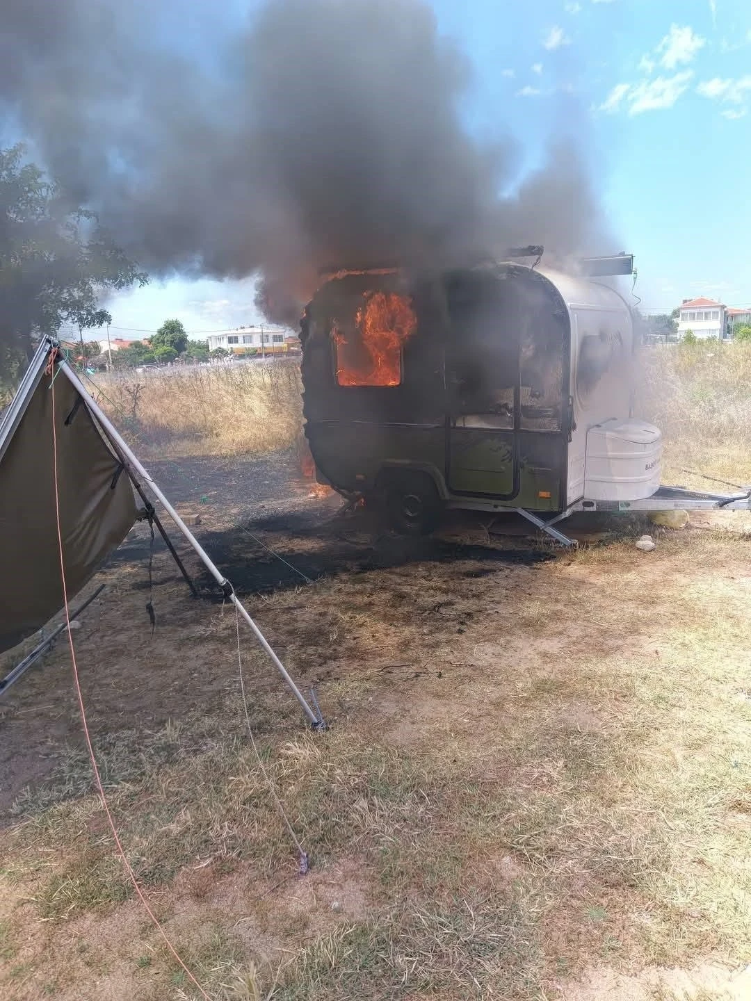 İhbar üzerine olay yerine itfaiye ve jandarma ekipleri sevk edildi. Kontrol altına alınan yangın söndürülürken, karavan kullanılamaz hale geldi. Yangınla ilgili inceleme başlatıldı.