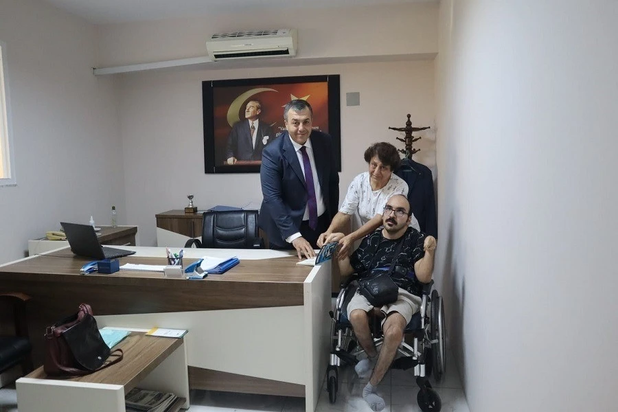 Fiziksel engelli M. Emre Öncel hayatında yaşadıkları tüm zorluklara rağmen yazdığı kitabı makamında ziyaret ettiği Dalama Kaymakamı Mesut Yakuta’yı hediye etti.