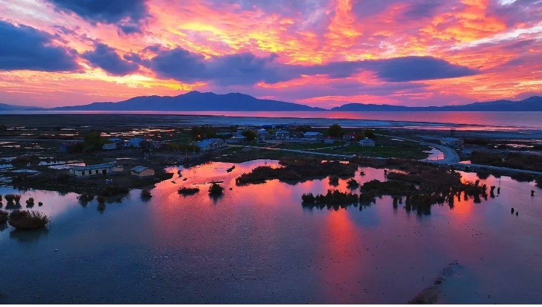 Van Gölü’nün hemen doğusunda yer alan ve özellikle flamingolar başta olmak üzere birçok kuş türüne ev sahipliği yapan Erçek Gölü, gün batımı manzarasıyla fotoğraf ve doğa meraklılarının uğrak yeri olmaya devam ediyor.