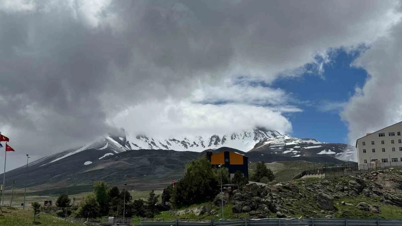 Kayseri’de sıcaklıkların düşmesi ile birlikte Türkiye’nin önemli kış turizmi merkezlerinden biri olan Erciyes Dağı’nın tepesini bulutlar kapladı. Yaz aylarına girerken de eteklerinde hala kar olan Erciyes Dağı tepesindeki bulutlarla birlikte kartpostallık görüntüler oluştururken görenlere de görsel şölen yaşattı.