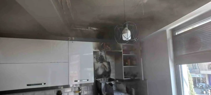 Balıkesir’in Erdek ilçesinde Necmiye K. ait olan evin mutfağında yangın meydana geldi.