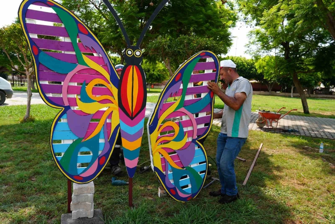 Mersin’in Erdemli ilçesinde belediye ekipleri, kullanılmayan ve atıl durumdaki malzemeleri dönüştürerek park ve bahçelere estetik bir görünüm kazandırıyor.