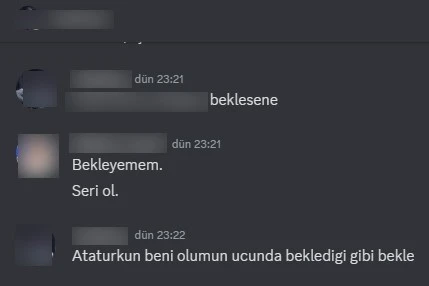 Geçtiğimiz günlerde bir kız çocuğunun Discord isimli mesajlaşma uygulaması üzerinden kendisine zorla şiddet uygulatıldığı ve cinsel içerikli görüntülerinin ailesine yollanmakla tehdit edildiğine dair sosyal medyada yayımlanan videolara yönelik İçişleri Bakanlığı inceleme başlattı. Ardından videonun kurgu olduğu ortaya çıkarken, bu olayla birlikte sosyal medyada yayılan çeşitli olaylar üzerine devlet yetkilileri Discord isimli platform için harekete geçti. Yapılan çalışmalar sonucunda Discord’un kendi bilgilerini, IP adreslerini ve içeriklerini güvenlik birimleriyle paylaşmayı reddetmesi sonucunda Ulaştırma ve Altyapı Bakanlığı platforma erişim engeli getirdi. Türkiye’de uygulanan erişim engelinin ardından Discord ise zararlı on binlerce kullanıcıyı yasaklayıp bazı toplulukları kapattı. Anıtkabir’i paramparça edeceklerini söyleyip İkbal Uzuner’e küfür ettiler
