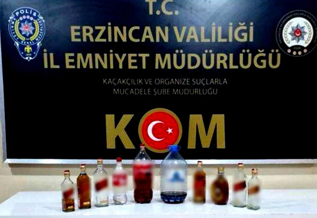 Erzincan’da polisin yaptığı denetimlerde bir miktar kaçak ve el yapımı alkol ele geçirildi.