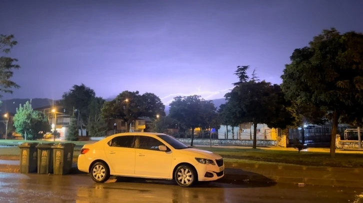 Öte yandan yağan yağmurla birlikte çakan şimşekler birçok vatandaşı endişelendirdi. Bir vatandaş aracıyla seyir halindeyken çakan şimşekleri cep telefonu kamerası ile görüntüledi.