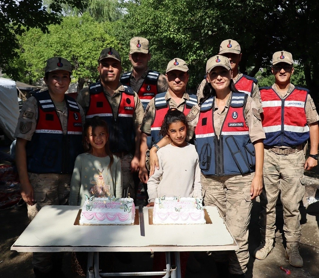 Erzincan İl Jandarma Komutanlığı Aile İçi Şiddetle Mücadele ve Çocuk Kısım Amirliği ekiplerince, Adıyaman’dan gelip Erzincan’ın Üzümlü ilçesinde aileleri mevsimlik tarım işçisi olarak çalışan Fatma (5) ve Feride’nin (6) doğum günü olduğu öğrenildi. Bunun üzerine jandarma ekiplerince iki küçük çocuğa doğum günü sürprizi yapıldı. Jandarma ekipleri doğum günü pastası alarak çocukların doğum gününü kutladı, diğer çocuklara da hediyeler takdim ettiler. Dağıtılan hediye ve balonlarla mutluluktan havaya uçan çocuklar jandarma ekiplerine sevgi gösterisinde bulundular.