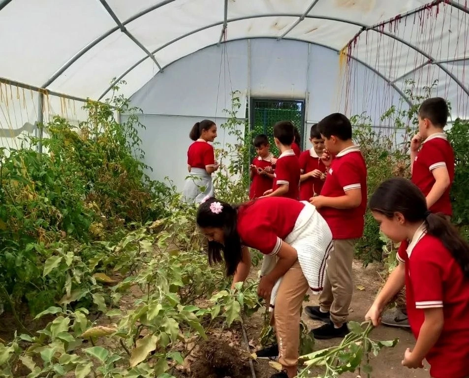 Türkiye genelinde 28 ilde uygulanan proje kapsamında Okuldaki Çiftlik uygulamasına katılan öğrenciler, okullarında bulunan serada kış döneminde maydanoz, roka, taze soğan gibi yeşillikler yetiştirmeyi başardılar.