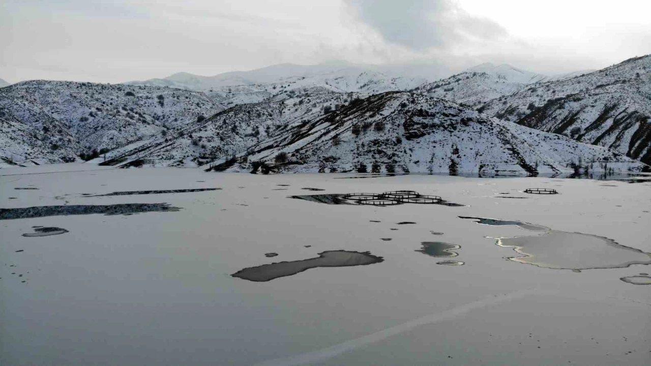 Yaz mevsiminde tarım arazilerinin sulamasında kullanılan, aynı zamanda kafes balıkçılığı da yapılan barajda, balık kafesleri buz kütlesinin altında kaldı. Kar yağışının olmadığı ancak gece saatlerinde etkili olan soğuk hava nedeniyle Doğu Anadolu Bölgesi’ndeki, dere, çay ve barajlar dondu.
