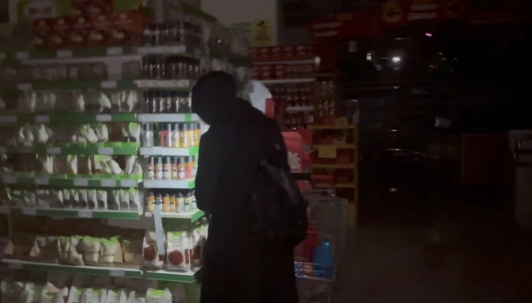 Kent genelinde yaşanan elektrik kesintileri nedeniyle sokaklar, evler ve iş yerleri karanlığa gömüldü. Elektriğin kesilmesiyle birlikte marketlerde kasalar ve aydınlatmalar devre dışı kaldı. Alışverişine devam etmek isteyen vatandaşlar, cep telefonlarının ışıklarıyla rafları aydınlatarak alışveriş yaptı.
