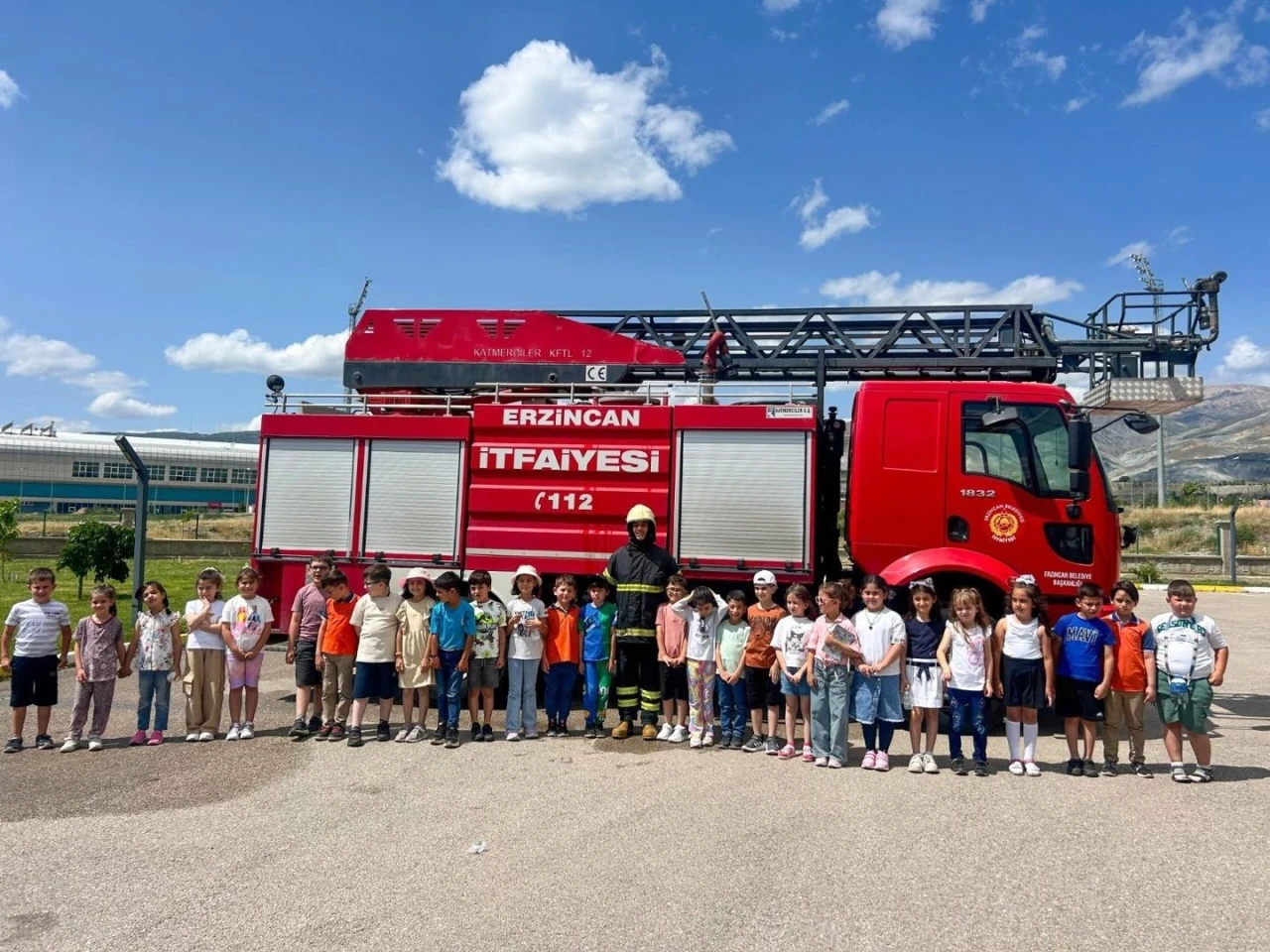 Erzincan Melikşah İlkokulu birinci sınıf öğrencileri öğretmenleri nezaretinde, Erzincan Belediyesi İtfaiye Müdürlüğünü ziyaret etti.
