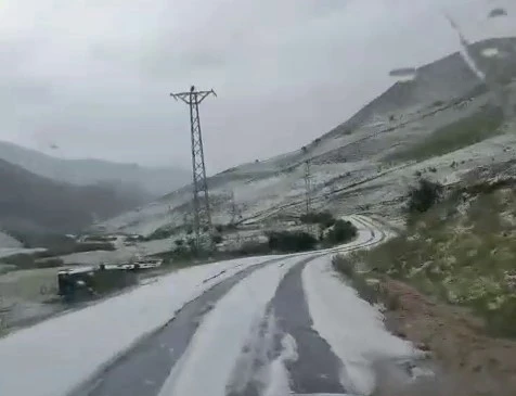 Erzurum’da etkili olan yağmur ve dolu yağışı yaz ortasında yüksek kesimlerde adeta kıştan günleri hatırlattı.