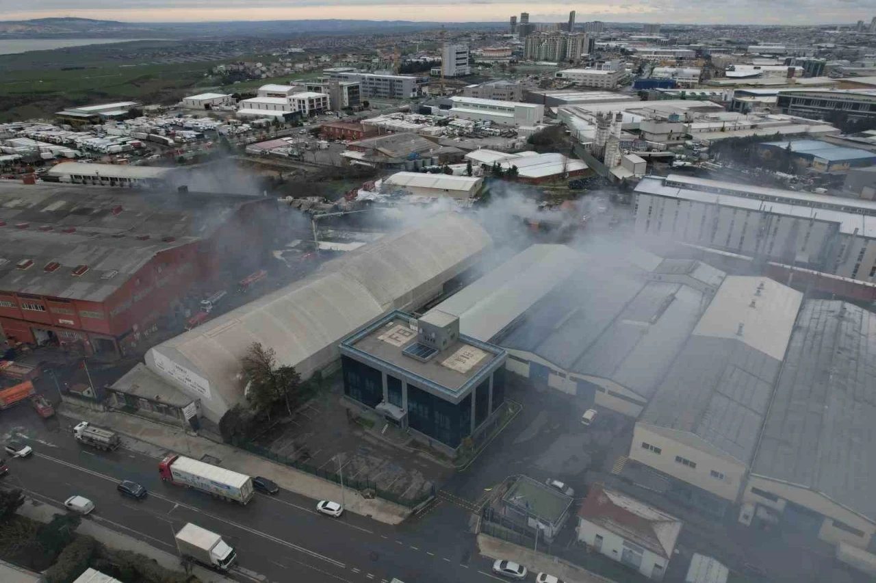 Esenyurt’ta gece saatlerinden beri devam eden hırdavat fabrikasında başlayan yangın gündüz de devam ediyor. Fabrikanın olduğu bölge trafiğe kapatılırken, ekiplerin soğutma çalışması havadan görüntülendi.