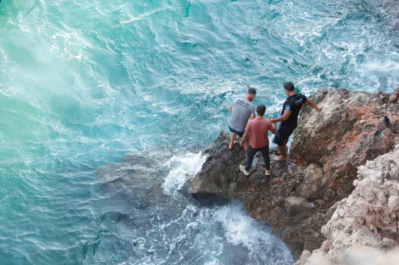 Antalya’da eşine sinirlenen genç, görüntülü arama ile eşine hayatına son vereceğini söyleyince görüntü üzerinden yeri belirlendi. Genç adam 40 metrelik falezlerin sarp kayalıklarından yaklaşık 1.5 saatlik arama ve kurtarma çalışması ile polis ekipleri tarafından kurtarıldı.