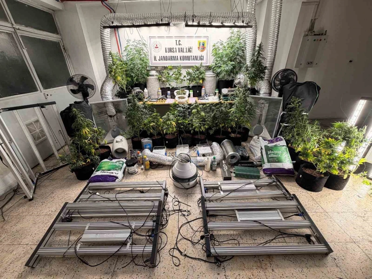 Nilüfer ilçesinde uyuşturucu imalathanesine çevrilen bir evde 4 parça halinde 755 gram kubar esrar, 27 kök skunk bitkisi, 4 kök kenevir bitkisi, 4 adet iklimlendirme sistemi, 1 adet pres makinesi, çok sayıda şeffaf poşet ve kilitli şeffaf poşet ele geçirldi. Bir kişi gözaltına alınırken, şahsın sorgusunun ardından adliyeye sevk edileceği öğrenildi