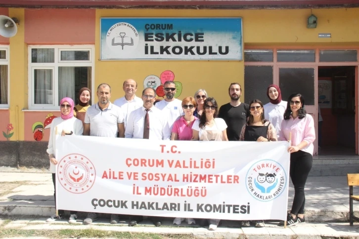 Okul ziyaretinde Çorum İl Özel İdaresinin desteği ile komite üyesi çocuklar tarafından okula spor malzemeleri, çocuklara ise okul çantası ve kırtasiye malzemeleri hediye edilip “Çocuk Hakları” konusunda bilgilendirme yapılmış, okulun duvarlarına çocuk hakları konusunda farkındalık oluşturmak amacıyla Milli Eğitim Müdürlüğü’nde görevli resim öğretmenlerimiz tarafından görseller resmedilmiştir.