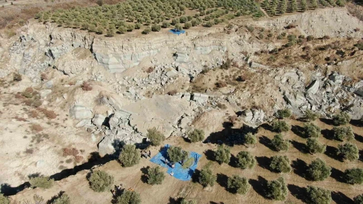 Hatay’da depremin ortadan ikiye ayırdığı 33 dönümlük zeytin bahçesinde hasat başladı. Depremzede aile, fay hattının devasa bir yarık oluşturduğu bahçede tedirginlik içerisinde hasada devam ediyor.