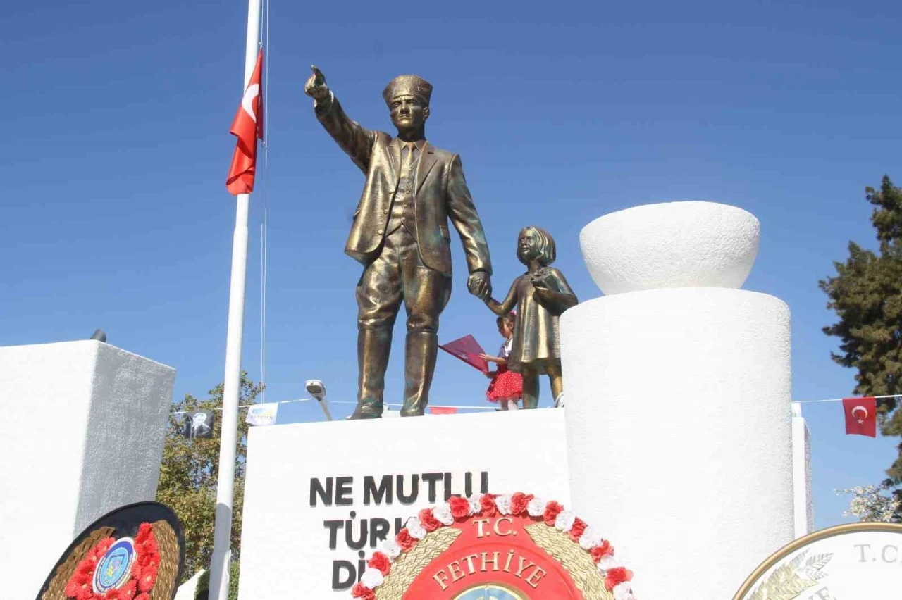 Muğla’nın Fethiye ilçesinde, 29 Ekim Cumhuriyet Bayramı’nın 101. yıldönümü dolayısıyla düzenlenen çelenk sunma törenine katılım oldukça yoğundu. Fethiye Beşkaza Meydanı'nda bulunan Atatürk Anıtı önünde gerçekleştirilen etkinliğe, Fethiye Kaymakamı İsmail Hakkı Ertaş, Garnizon Komutanı Dz. Alb. Dalaman Dz. Hv. Üs. K.lığı Hrk. K. Emre Ahmet İnal, Fethiye Cumhuriyet Başsavcısı Günşafak Karartı ve diğer protokol üyeleri katıldı.