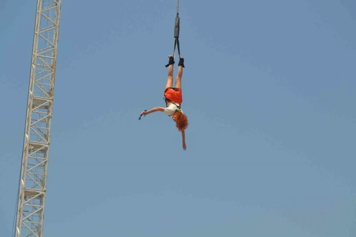Fethiye’de yerli ve yabancı turistler, "bungee jumping" ile heyecan dolu anlar yaşıyorlar. Foça Mahallesi’ndeki Su Sporları Merkezi’nde düzenlenen etkinlik, tatilciler arasında büyük ilgi görüyor. Fethiye’nin Çalış bölgesinde faaliyetini sürdüren bungee jumping merkezinde tatilciler heyecan dolu dakikalar yaşıyor. Katılımcılara atlayış öncesinde gerekli bilgiler verilerek, güvenlik kemeri takılarak vinç platformundan 51 metre yüksekliğe çıkılıyor ve atlayış gerçekleştiriliyor. Katılımcılar, atlayış sırasında ellerine bağladıkları aksiyon kameralarıyla deneyimlerini kaydediyor. Küçükten büyüğe herkesin yapabildiği adrenalin sporunu yapan bir daha aynı heyecanı deneyimlemek istiyor. “Fethiye dışında başka bungee jumping istasyonu yok”