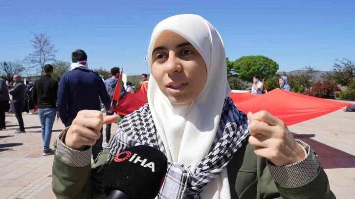 Üniversitenin Fizik bölümünde doktora eğitimi gören Filistinli kadın Yosra A Mater (31), İHA muhabirine, Filistin’in tüm Müslümanların olduğunu belirtti. "Orası kutsal bir yer, tüm Müslümanlara ait"
