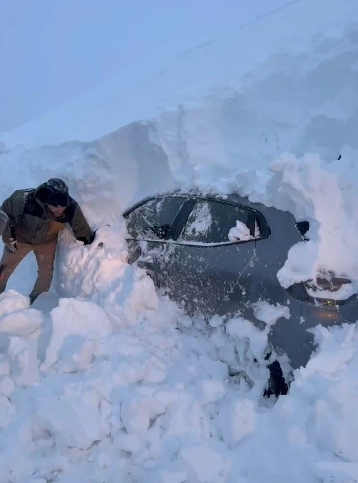 3 gündür aralıklı devam eden kar yağışı, kara saplanan aracın üzerini tamamen kapattı. Karın durmasıyla beraber bölgeye sevk edilen ekiplerce otomobil 3 günün sonunda tonlarca karın altından çıkarıldı.