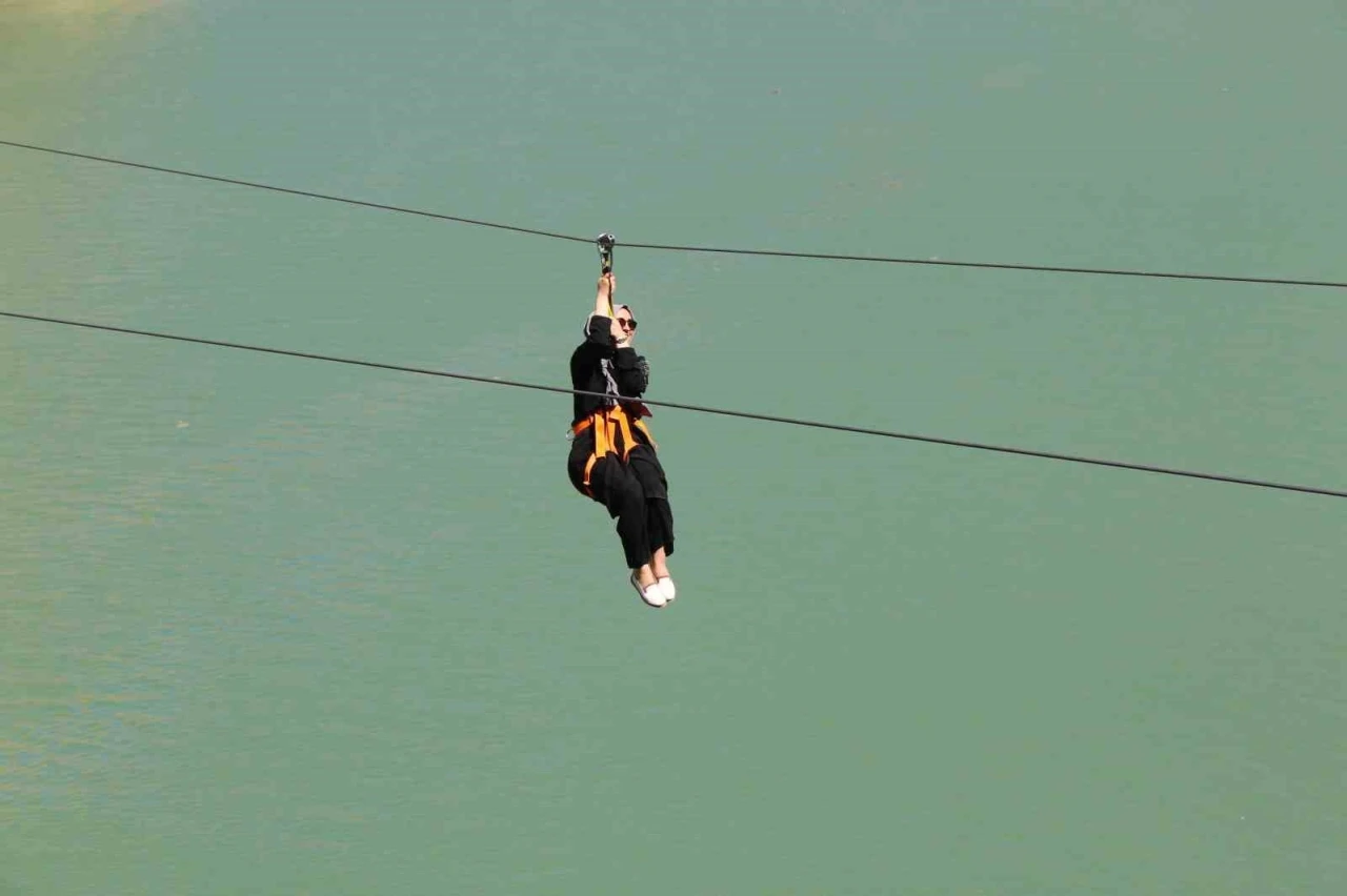 Dünyanın ikinci büyük kanyonu olan Karanlık Kanyon’da yapılan zipline ve tekne turu adrenalin seven turistlerin vazgeçilmezi oldu.