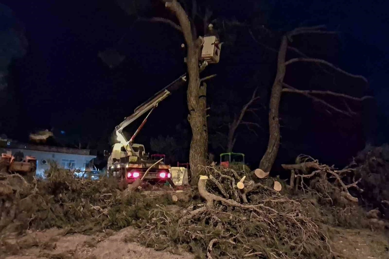 Aydın’da etkili olan kuvvetli fırtına ve sağanak yağış, kent genelinde tehlikeli anlara neden oldu. Efeler ilçesine bağlı Kenger Mahallesi’nde şiddetli rüzgar nedeniyle bir çam ağacı kökünden yan yatarak bir evin üzerine doğru devrilme tehlikesi oluşturdu. Çevrede yaşayan vatandaşların ihbarı üzerine bölgeye yönlendirilen ekipler, muhtemel bir faciayı önlemek için hızla harekete geçti. Bomlu araç yardımıyla kontrollü şekilde müdahale edilen çam ağacı, güvenli biçimde kesilerek kaldırıldı. Yapılan çalışma sayesinde evde yaşayanlar büyük bir tehlikeden kurtarılırken, herhangi bir can ve mal kaybı yaşanmadı.