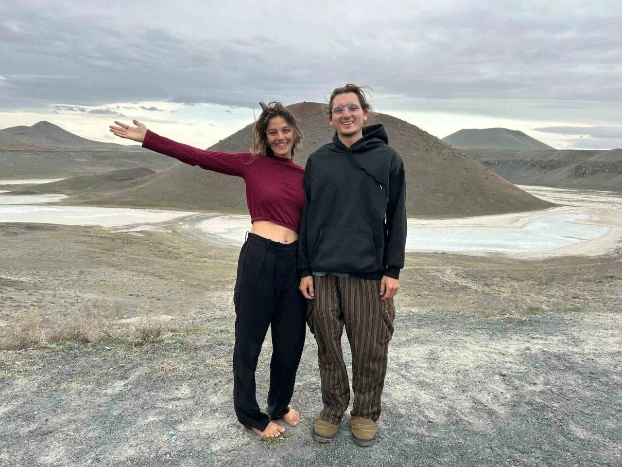 Karavanları ile 27 Eylül’de Fransa’dan tura başlayan jeolog Samuel Schiele (22) ve biyolog Merel Klaarmond (29), İsviçre, İtalya, Avusturya, Slovenya, Hırvatistan, Karadağ, Malezya, SriLanka ve Yunanistan gibi ülkeleri gezdi. İki arkadaş Meke Gölündeki moladan sonra Kapadokya’ya gideceklerini ve gelecek hafta Türkiye’den ayrılacaklarını ifade etti. Samuel Schiele, dünyanın en güzel yerlerini gezdiklerini belirterek, "İnsanları ve kültürleri tanıyoruz. Onların yaşantılarını öğreniyoruz. İnsanlarla tanışıp dünya dostluğuna katkı yapıyoruz. Her ülke bir başka güzel. Her ülkenin coğrafyası, kültürleri ve yaşantıları farklı. 10 Aralık’ta Türkiye’ye geldik. Karavanı 3 ay İstanbul’da bıraktık. Sri Lanka, Maldivler, Malezya ve Endonezya’daydık. 25 Şubat’ta İstanbul’a geri döndük. Van, Mardin’e kadar doğuya doğru sürdük. Şimdi Avrupa’ya geri dönüyoruz. Meke Gölü çok etkileyici. Gün batımı ve gün doğumu eşsiz güzellikler sunuyor" şeklinde konuştu.